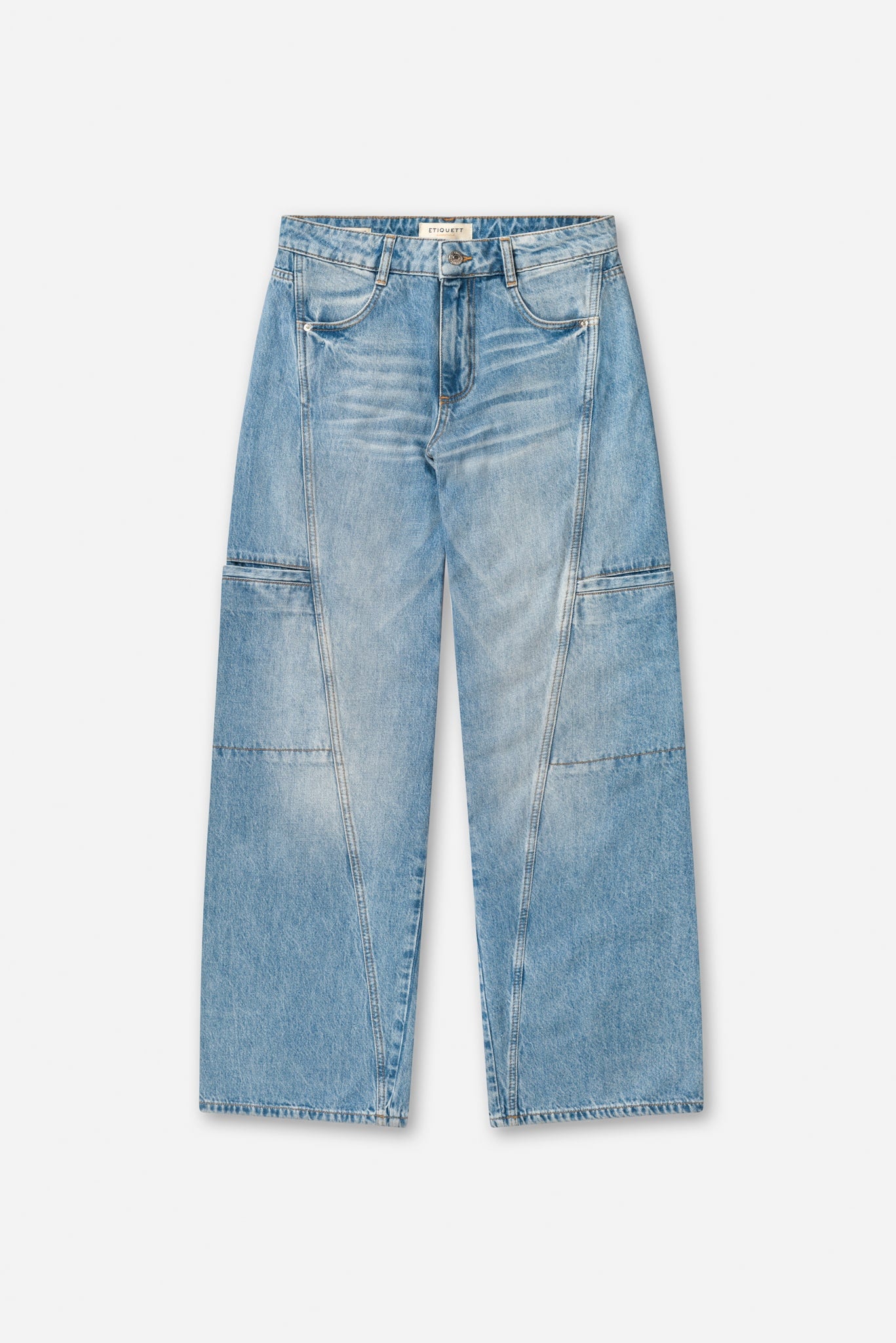 Hannah is the ultimate jeans in a wideleg fit with modern comfort. With its 90's vintage-inspired retro blue and destroyed details around the pockets. These jeans redefine classic style with a fresh twist.